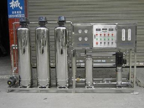 自来水或原水箱→原水加压泵→石英砂过滤器→活性碳过滤器→阳树脂软水器/阻垢剂(根据水质二选一或均不配)→保安过滤器→高压泵→反渗透膜组→纯水储罐(按需求配置)